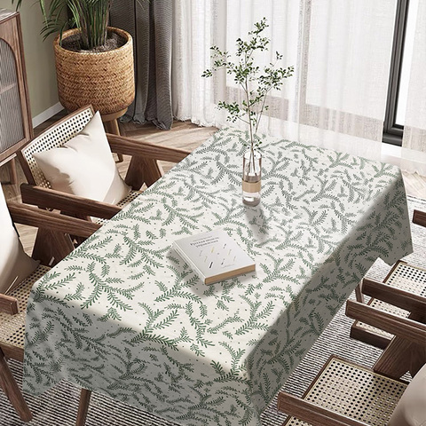 Amity Custom Printed Green Leaf Pattern Tischdecke Hochwertige wasserdichte rechteckige Tischdecke für Esstisch